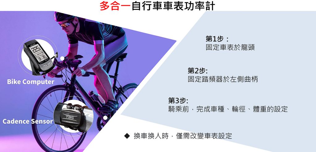無需工具、不挑車種,只要固定好車表與踏頻器再正確輸入騎乘者資訊即可。大幅降低跨入欲利用科學方法量測運動效益的自行車愛好者投資設備的門檻。