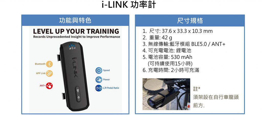★ i-LINK: 中繼機 + 踏頻器,相容於市面上大多數的車表,不需要捨棄您原有的GPS車表,只要安裝、配對與基本設定完成即可使用。提供速度、功率輸出或任何騎行數據。